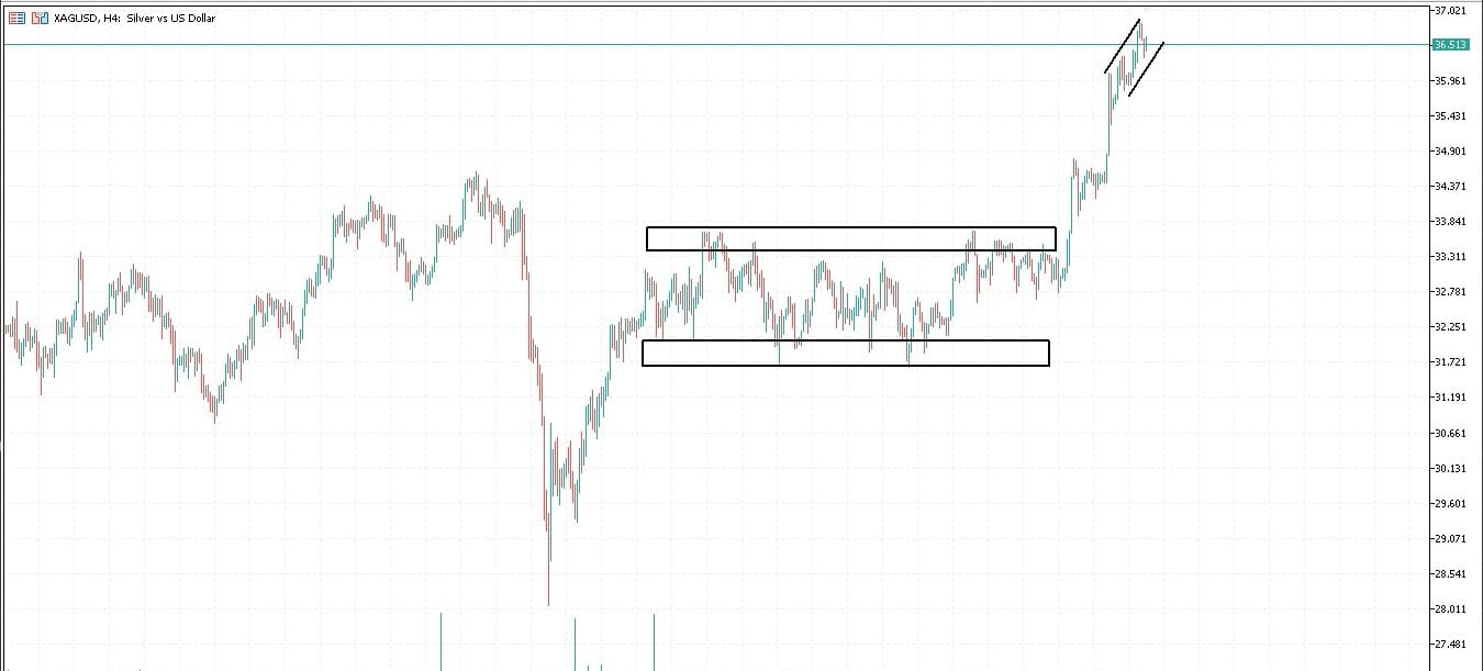 Structure: After breaking above $34.09656, XAG/USD formed a parallel ascending channel, showing a steady bullish momentum.